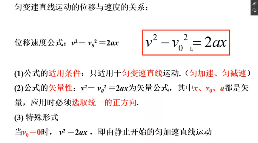 3. v2v02=2axv^2 - v_0^2 = 2 a x
